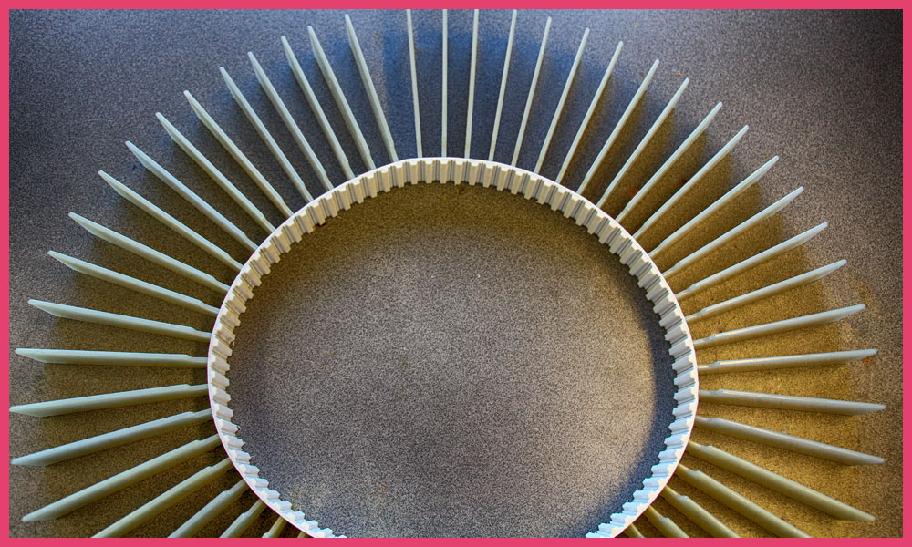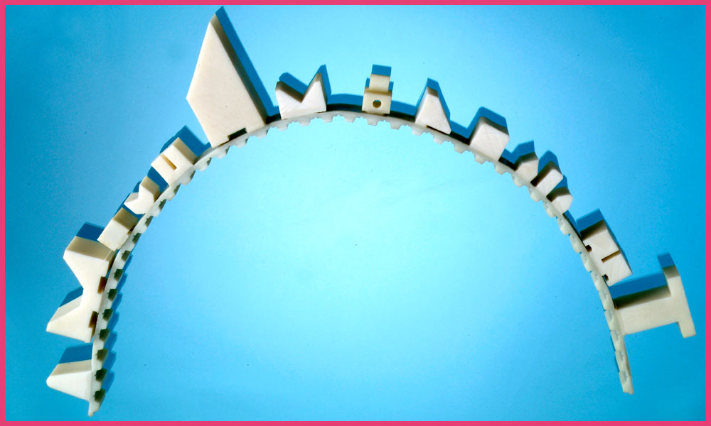 Wir fertigen Mitnehmernocken in verschiedenen Fertigungsverfahren und verschweißen diese auf PU-Zahnriemen. Unsere Mitnehmernocken können im Spritzgussverfahren oder mit CNC-Technik gefertigt werden. Dadurch können Mitnehmernocken in verschieden Formen und Shorehärten hergestellt werden. Durch den eigenen Werkzeugbau können wir auf ca. 600 Spritzgusswerkzeuge für verschiedene Profilformen zurückgreifen. Und ständig kommen neue Formen dazu.